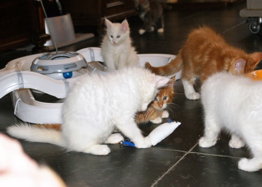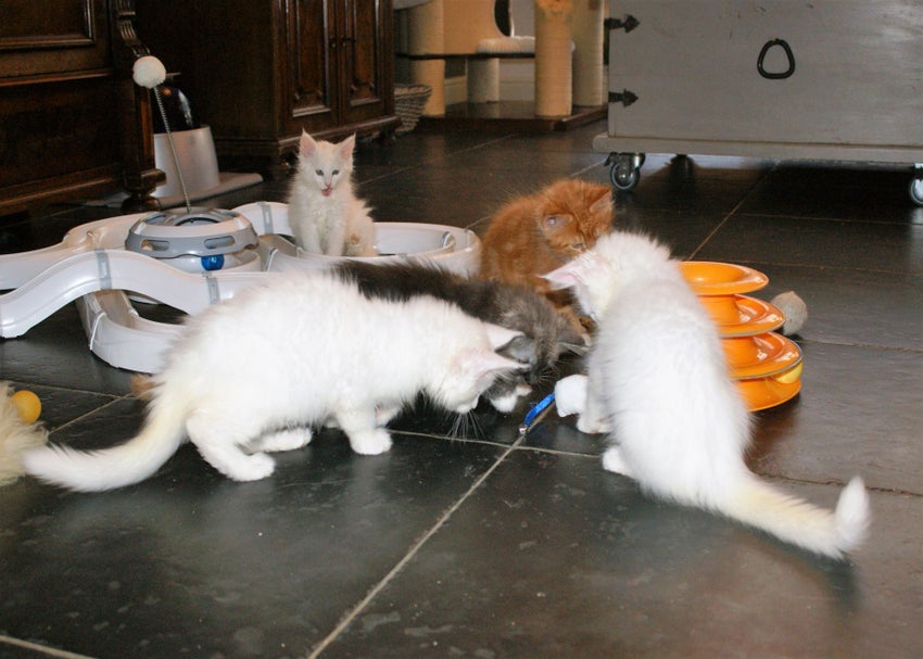 31-10-2016: Floortje is nu 5 weken oud. Ze eet nu vlees en speelt en ontdekt de hele dag door, ook komt ze graag knuffelen als ze me ziet dan komt ze lekker op schoot liggen.