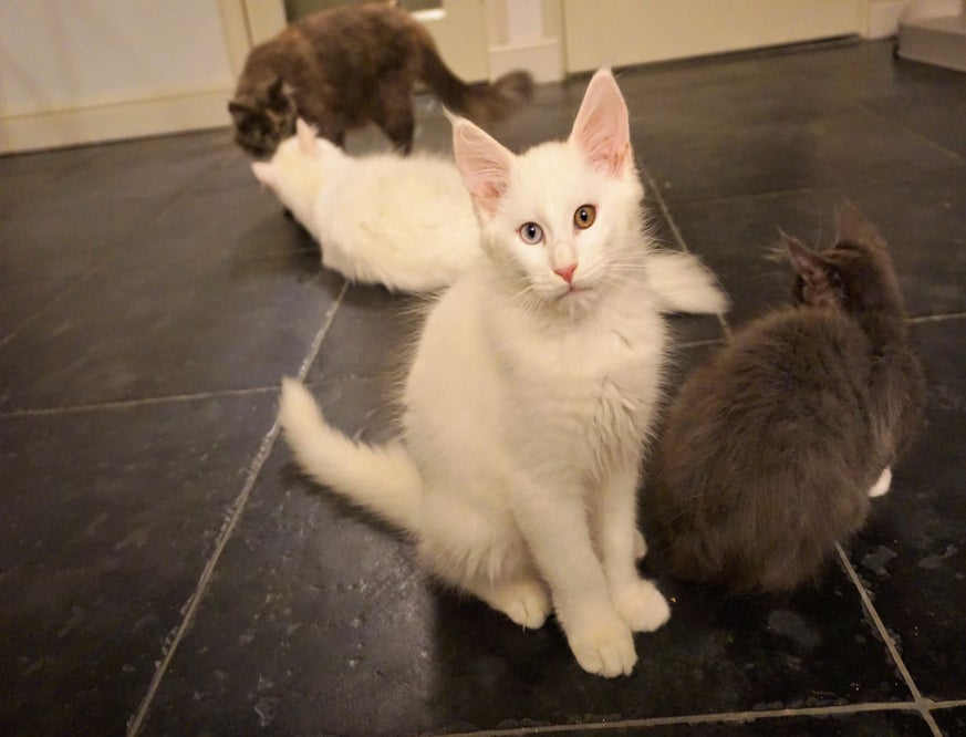 21-11-2016: Floris is nu 8 weken oud. En ondanks hij niks hoort is het echt een clown. Hij rent en springt het liefste ligt hij in je nek lekker te knuffelen.