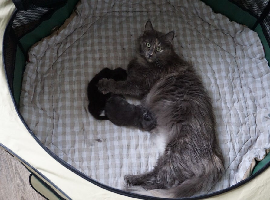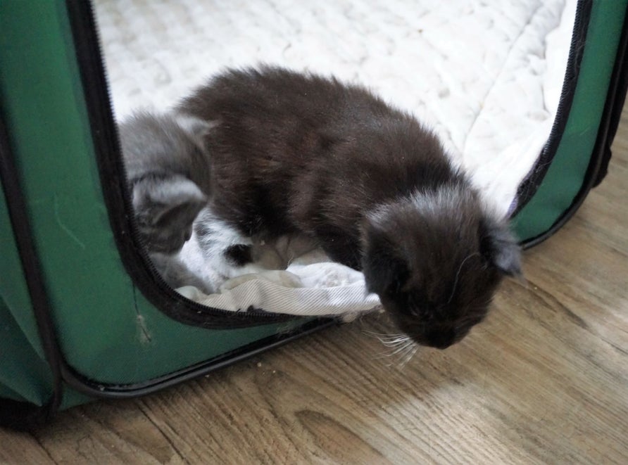 05-03-2018: Ik ben nu 2 weken oud, en ik heb mijn oogjes open, we zijn al wat nieuwsgierig als we wat horen of zien en proberen als mama de bench uit komt ook ermee uit te kruipen.